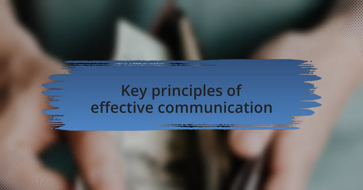 Understanding the key principles of effective communication is vital, especially in advocacy settings. Active listening, for instance, has always been a game changer for me. In one memorable discussion with a peer advocate, I realized that truly hearing her concerns not only strengthened our connection but also sharpened my understanding of the issues at hand. Have you ever found that when you really listen, the conversation transforms?