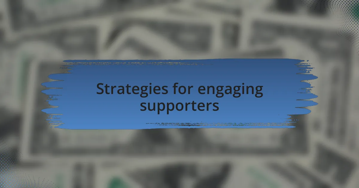 Engaging supporters effectively begins with building a community around the cause. In my experience, creating a shared space—whether through social media groups or local gatherings—allows for organic connections. I remember attending a grassroots meeting for equal pay advocacy, where supporters exchanged stories and rallied together. That sense of belonging can turn passive followers into active participants. Have you thought about how much stronger a movement feels when it’s fueled by shared convictions?